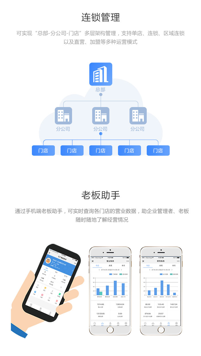 從功能上看,支持連鎖,而且要部署快的;基本的商品建檔、庫存、采購、銷售流水都有。