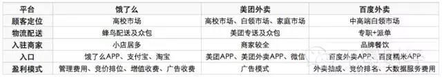 ▲ 餓了么、美團外賣、百度外賣業務戰略PK,來自中國電子商務研究中心。